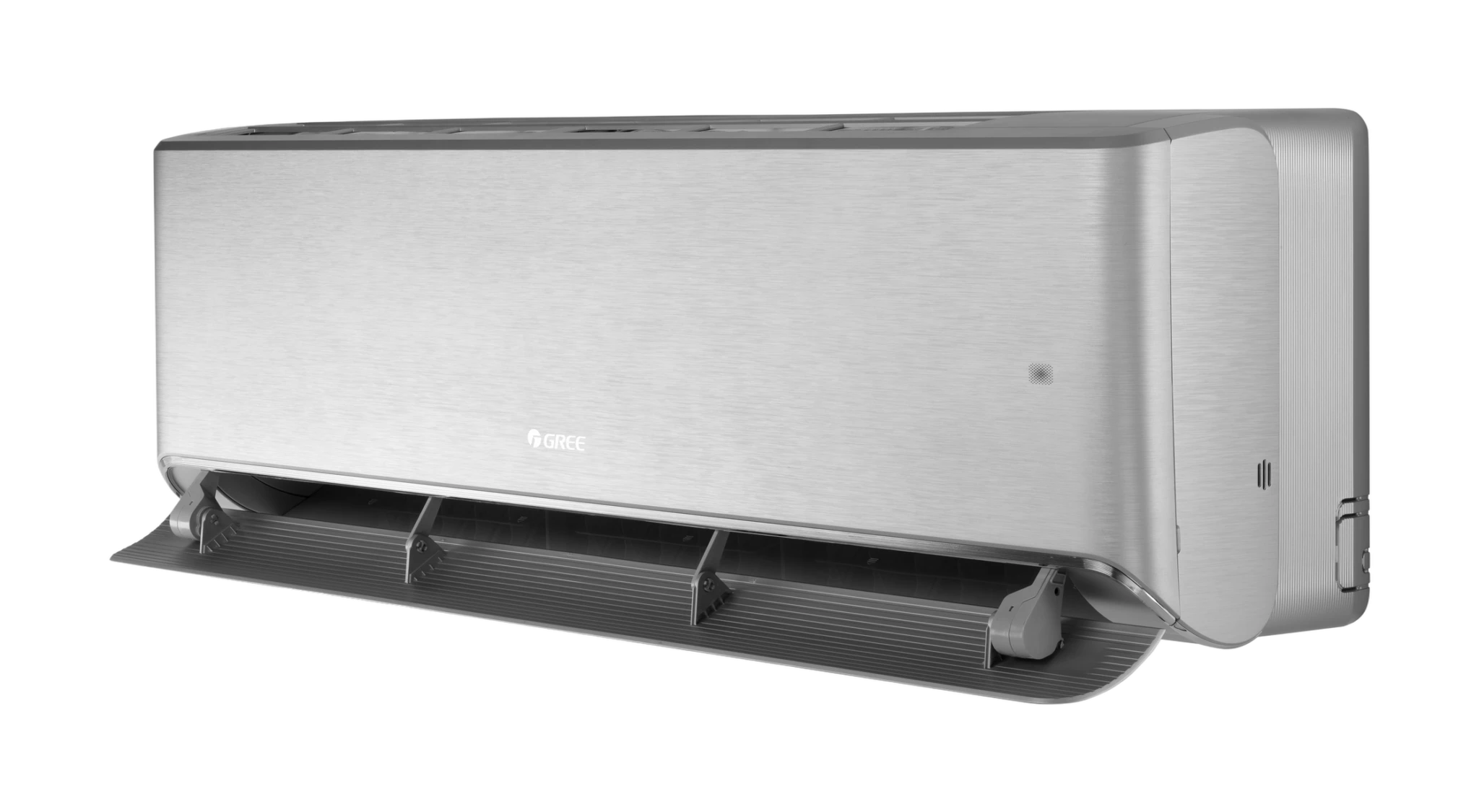 Zaokrąglona żaluzja z szerokim zakresem ruchu pozwala precyzyjnie kierować nawiew, zapewniając komfort zarówno w pobliżu urządzenia, jak i w całym pomieszczeniu. Specjalne ustawienie umożliwia jednoczesny nawiew w dwóch kierunkach, eliminując bezpośredni przepływ powietrza na osoby.